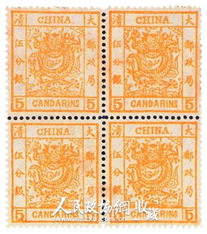 大龙(薄纸)邮票四方连(发行日期:1878.7-9)