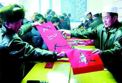 回族书画家为汉族群众写春联
