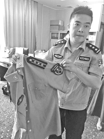 警方从邓某家中搜出用于行骗的军装,挂有总参谋部上校军衔。记者万勤 摄
