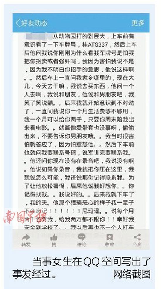 广西“土豪”的士司机月给2千要包养女大学生乘客