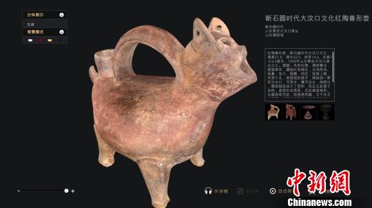 图为山东数字化博物馆展品-红陶兽形壶3D展现。 许鑫 摄