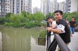 昨天下午,记者来到小区,宽二三十米的事发河道穿过书香景苑小区,河道中间有座桥,桥栏杆的高度在人的胸口位置。