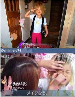 一名自称永远18岁的金发辣妈“紫帆”外型艳丽,育有1子1女,却把仅有6岁的儿子结城琉雅打造成牛郎模样,顶着一头夸张金发及超细眉毛。她还被爆料常?;岽由吓@傻昙?,平常称呼儿子为“亲爱的”,甚至还上传和儿子的舌吻照,互动宛如情侣,离谱行径造成轰动抨击。