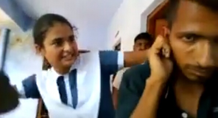 国际在线专稿:据外媒7日报道,一段印度高中女生暴打“性骚扰者”的视频近日在网络走红。视频中,印度女孩一边打骚扰者,一边要求道歉。而这一幕竟然发生在警察局,视频中能清晰看到警察站在一旁围观,还能听到拍摄者要求被打的骚扰者面向镜头。