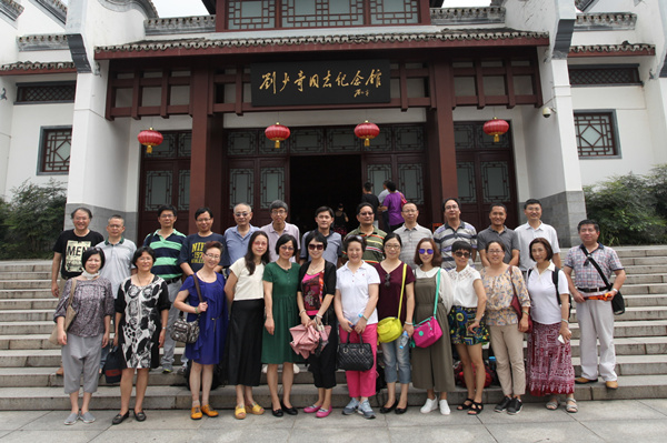8月13日,民进闵行区委会一行26人赴湖南省长沙、韶山考察活动。图为会员在刘少奇故居前合影。