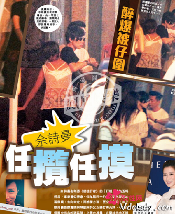 佘诗曼醉倒街头:日前相关媒体曝出香港女星佘诗曼在兰桂坊一处酒吧门口醉倒街头。被男友人又搂又摸。据悉佘诗曼在情感方面是白纸一张,旧爱已有新欢而自己空虚寂寞冷,所以只能靠喝酒买醉。