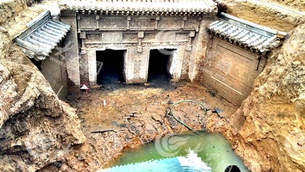 古墓位于地面以下约三米处,挖掘过程中不断有水溢出,工作人员在古墓“院内”挖上存水坑,用水泵往外排水。据现场一名考古爱好者用望远镜观察到的场景,古墓里面发现两具尸骨遗骸,都散落在棺外,怀疑墓葬已经被盗或者挖掘过程中遭到破坏。