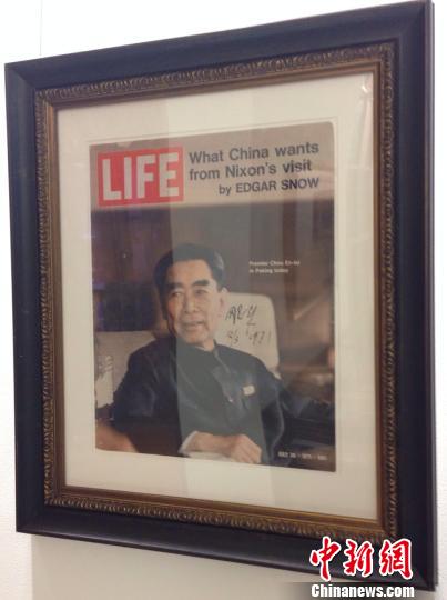展览上,爱因斯坦、斯大林、丘吉尔、宋庆龄、罗斯福等人的影像和手迹逐一亮相。其中,周恩来总理在《生活》杂志上的手迹格外引人注目。这份《生活》杂志于1971年7月刊发,上面登载了周恩来总理发布的美国总统尼克松将于次年5月访问中国的消息,是国外对此事最早的报道之一,见证中美两个大国由对立走向交流。1971年12月3日,周恩来在这份《生活》杂志上签名作为纪念。
