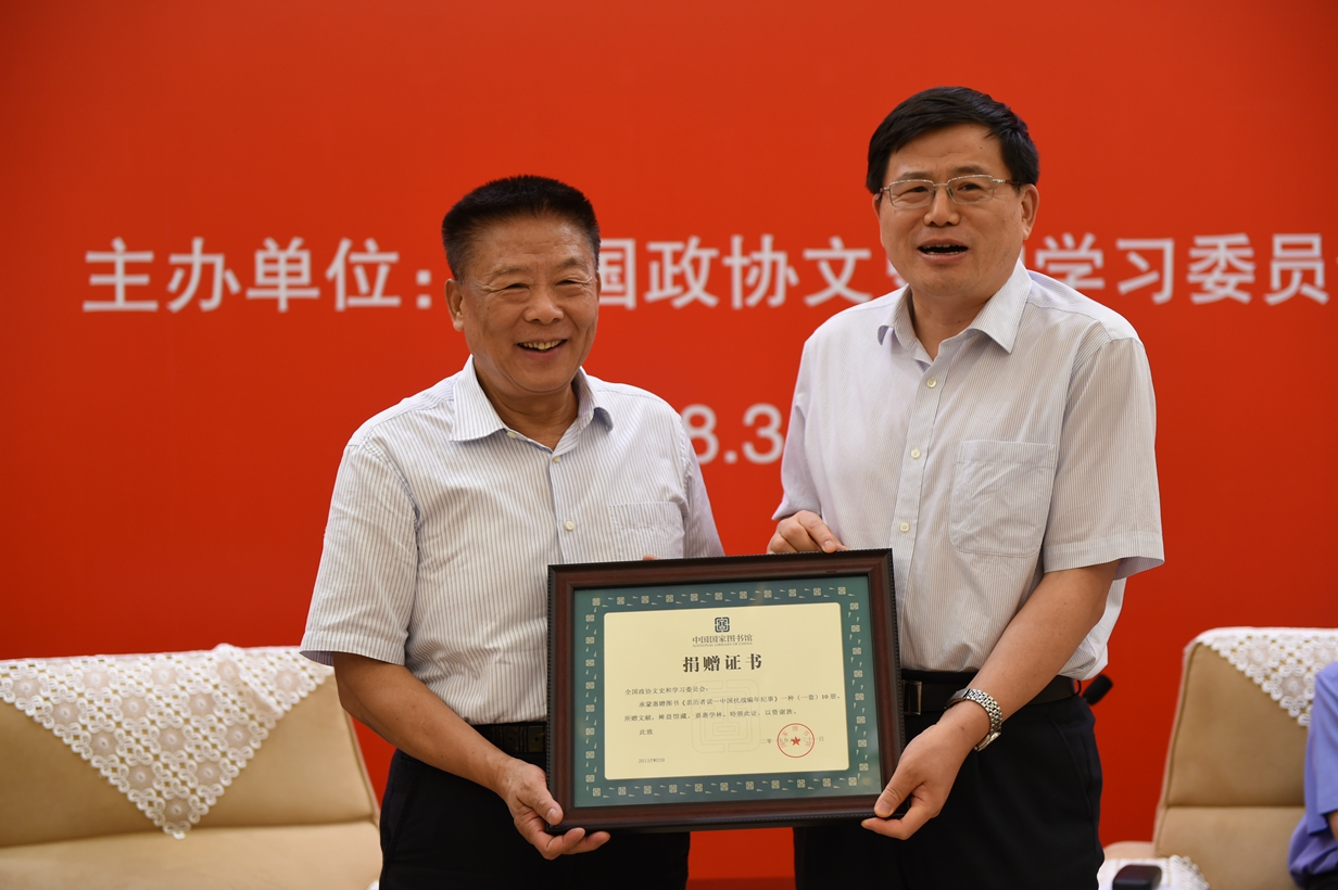 座谈会后,全国政协办公厅,全国政协文史和学习委员会向中央党史研究室、北京市政协、国家图书馆、中国人民抗日战争纪念馆、北京自忠小学、中国政协文史馆赠送了《亲历者说―中国抗战编年纪事》一书。
