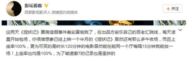 曝捉妖记高票房纪录造假 午夜场经常也会无故爆满