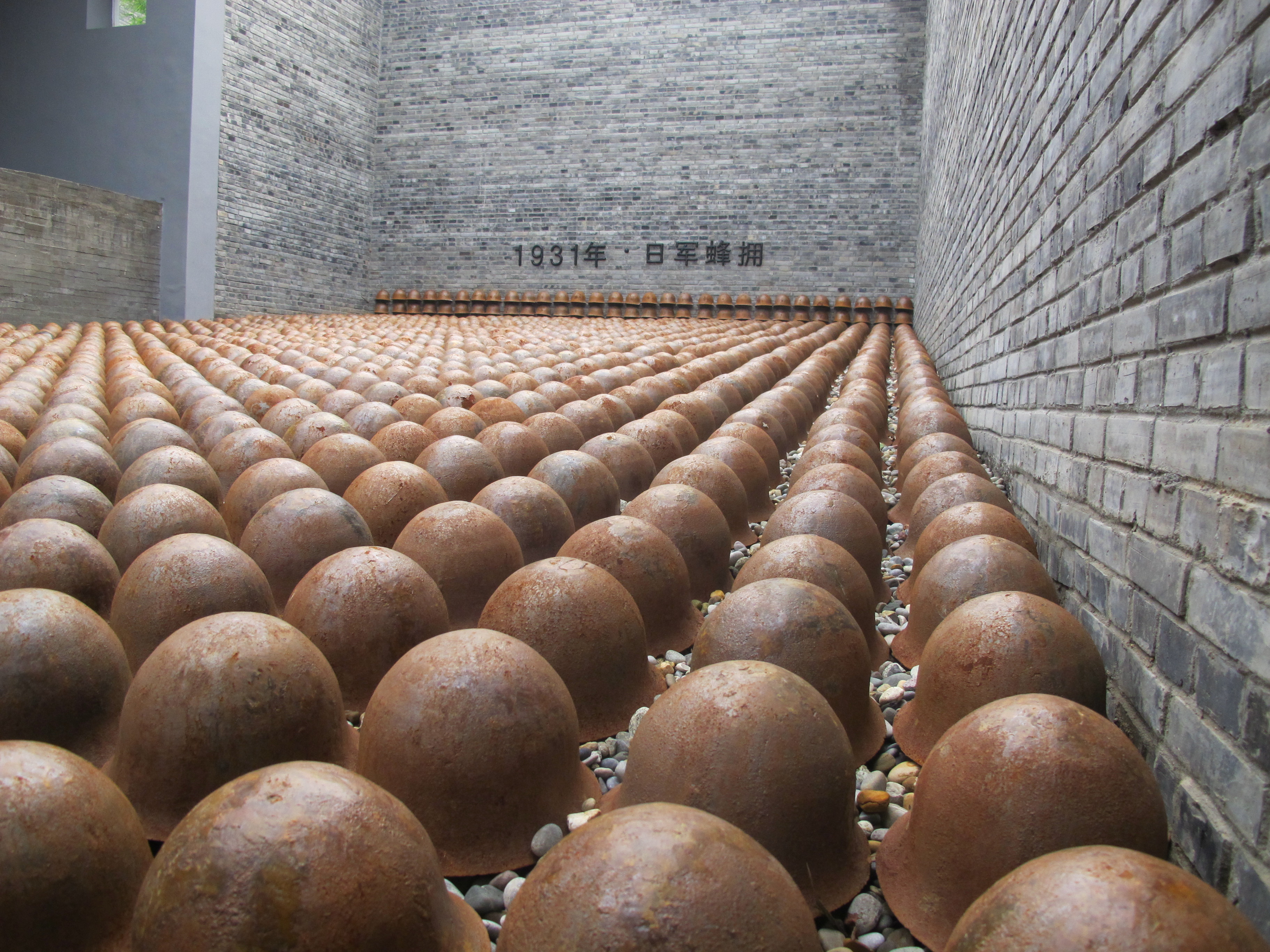 如今,站在展馆入口处,1800顶早已泛黄的侵华日军钢盔(复制品)铺陈的场景旁,樊建川手指墙上“1931年·日军蜂拥”几个黑色大字,讲起自己建立这个展馆的初衷。