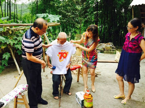 作为系列活动之一,自8月开始,民革自贡市委会主委叶智英先后率领市委班子成员、机关工作人员、部分基层组织负责人等陆续慰问了陈芳模、倪文渊、杜兰生等民革党员中的抗战将士遗属代表和已故党员黄埔军校老战士王晋琦的夫人及王耀明、余永昌等部分自贡籍远征军老兵,衷心感谢抗战将士和远征军老兵们为抗日战争及世界反法西斯战争所做的贡献,为他们送去慰问品、慰问金和纪念抗战胜利70周年的主题文化衫。