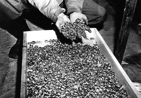 一个美国大兵拍到的纳粹党从集中营收集的整盒的金戒指。(网页截图)