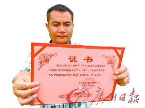 东莞男子获“见义勇为”奖励 嫌疑人被刑拘
