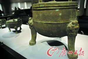 在东京国立博物馆展出的公元前3世纪、战国时代的蟠篱文鼎。