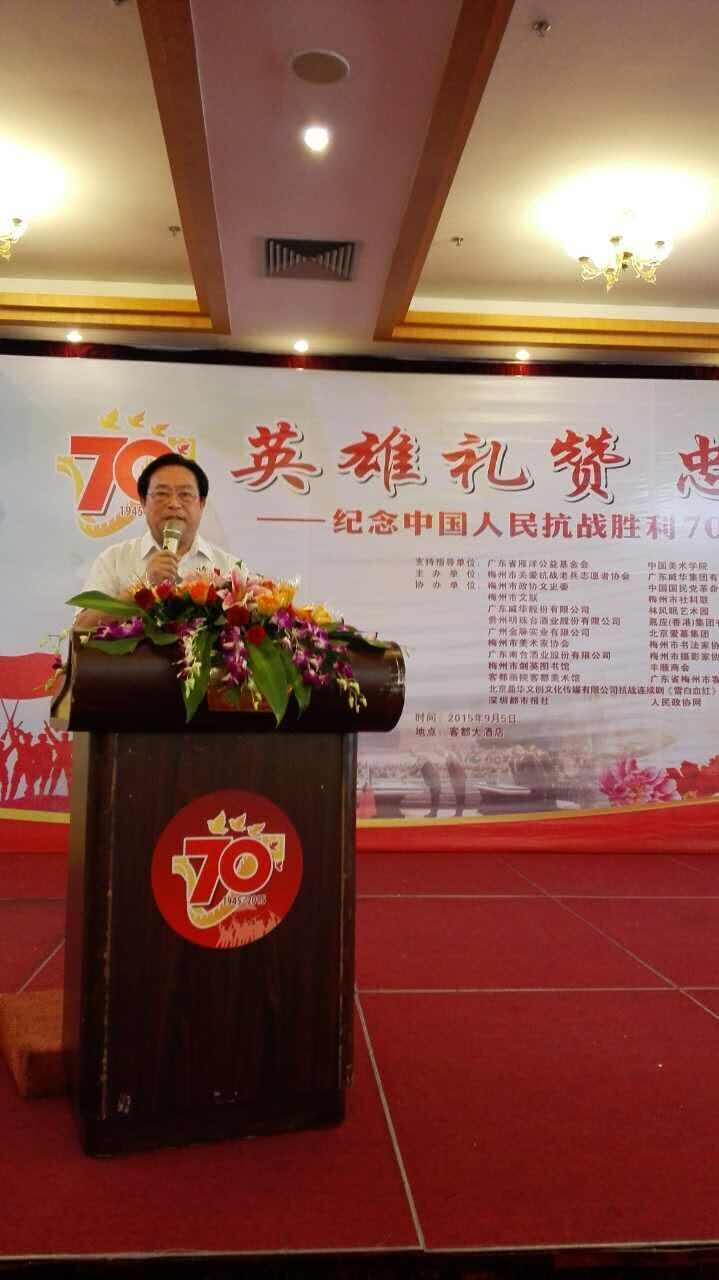 人民政协网梅州9月5日电  今年是中国人民抗日战争暨世界反法西斯战争胜利70周年。为铭记历史、缅怀先烈、珍视和平、开创未来,由广东省雁洋公益基金会叶剑英基金、中国美术学院支持指导,梅州市关爱抗战老兵志愿者协会、广东威华集团共同主办的“英雄礼赞 忠勇传承—纪念抗战胜利70周年抗战老兵座谈会暨系列活动”于9月5日在梅州举行。