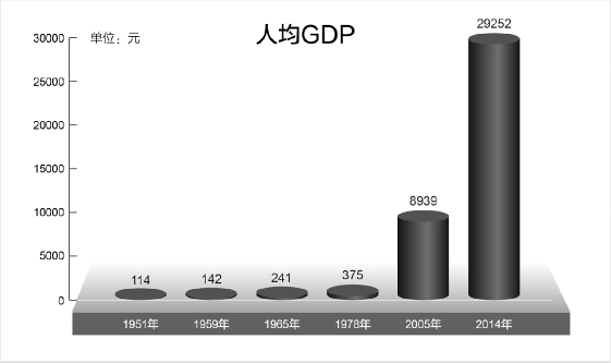 西藏生产总值由1965年的3.27亿元增加到2014年的920.8亿元,增长281倍。1994年以来,西藏地区生产总值连续20年保持两位数增长,年均增速高达12.4%。1965年西藏地方财政收入仅为2239万元,2014年达到164.75亿元,年均增长高达14.46%,自我发展的能力不断增强。全区工业增加值由1965年的0.09亿元增加到2014年的66.16亿元,增长735倍,年均增长14.4%。第二产业增加值在地区生产总值中的占比由1965年的6.7%提高到2014年的36.6%。2014年,全区社会消费品零售总额达364.51亿元,比1965年的0.89亿元增长了409倍,以年均13.1%的速度递增;进出口总额达22.55亿美元,比1965年的0.07亿美元增长了321倍,年均增长12.5%。