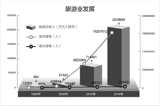 藏医药业、民族手工业、绿色食饮品和新能源等特色产业得到优先发展。目前,7个产业带初步形成,建设农业标准化示范区20个,培育地市级以上农牧业产业化龙头企业95家。建工、矿业、旅游、藏药、商贸等九大集团相继组建。藏药产业初具规模,全区藏药企业18家,藏药品种360多个。天然饮用水产量突破30万吨,成为新的经济增长点。2014年接待游客1553万人次,比旅游业起步时的1980年增长4436倍,年均增长28.0%;实现旅游总收入204亿元,增长20400倍,年均增长32.8%。