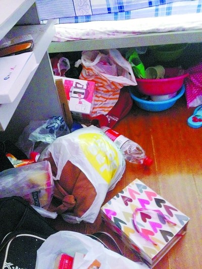 房东又打开了一间6人间的门。看见里面有人,小声对我说:“这个月租700元。”一个女孩正盘着腿坐在床上写东西。闲谈几句后,我问她每天都是坐在床上学习吗?她指着脏乱不堪的桌子说:“那里太窄了,而且人多,堆的全是东西。”