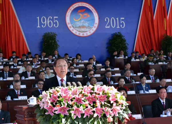 俞正声指出,这些辉煌成就的取得,是以毛泽东、邓小平、江泽民同志为核心的党的三代中央领导集体和以胡锦涛同志为总书记的党中央高瞻远瞩、英明决策的结果,是党的十八大以来以习近平同志为总书记的党中央继往开来、正确领导的结果,是西藏各族干部群众团结一心、艰苦奋斗的结果,是全国各族人民大力支援、真诚帮助的结果。这些辉煌成就的取得,充分展示了我国社会主义制度的巨大优越性,彰显了民族区域自治制度的强大生命力。