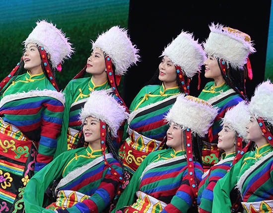 9月7日晚,庆祝西藏自治区成立50周年文艺晚会《中国梦·雪山欢歌》在拉萨举行。图为演出现场。