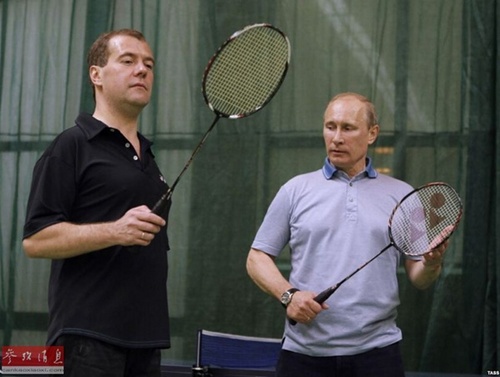梅德韦杰夫与普京一起打羽毛球,表示了他对这项运动的热爱。
