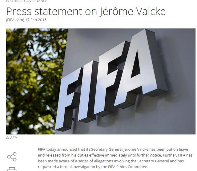 国际足联在官网上发表声明,瓦尔克已经进入“休假状态”,其职务也被解除,此决定立即生效。据《BBC》透露,据悉,瓦尔克被指控在世界杯门票的销售中获利,并涉嫌在2010年南非世界杯申办过程中,参与索贿1000万美元。