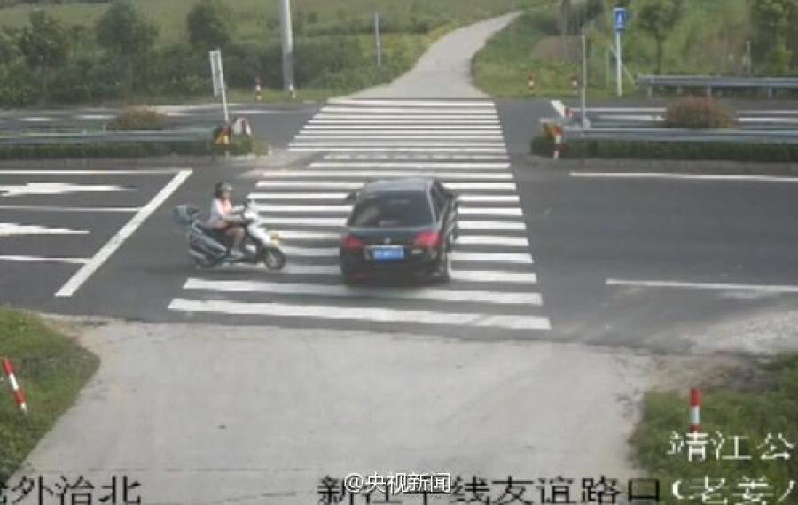 原标题:又一手机引起的悲剧 女子骑摩托玩手机被撞
