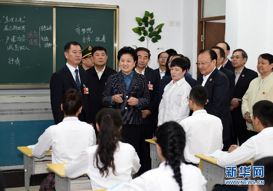 9月27日,中共中央政治局委员、国务院副总理、中央代表团副团长刘延东率中央代表团分团,带着党中央、国务院的亲切关怀和全国各族人民的深切情谊,来到和田地区、阿克苏地区慰问各族干部群众,并祝贺大家中秋节快乐。这是刘延东视察对口援建的和田天津中学。新华社记者 张领 摄