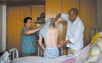 脱掉衣服,遍布全身的刀口、针眼清晰可见。