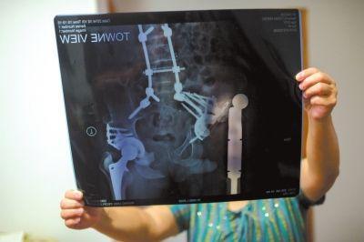 胡勇胜的身体缝合500余针,体内放置7块钛合金钢板(含假体)、46根钢钉、多处骨水泥。潘之望 摄