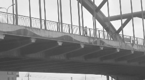 女子就是站在这段栏杆旁往河里撒钱的