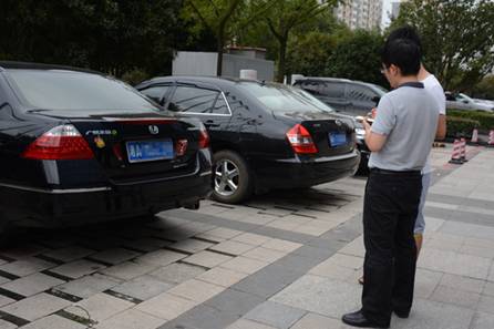 两节期间,湖南省纪委检查组工作人员在长沙市某高档酒店停车坪检查公车私用情况。(图片来源:中央纪委监察部网站)