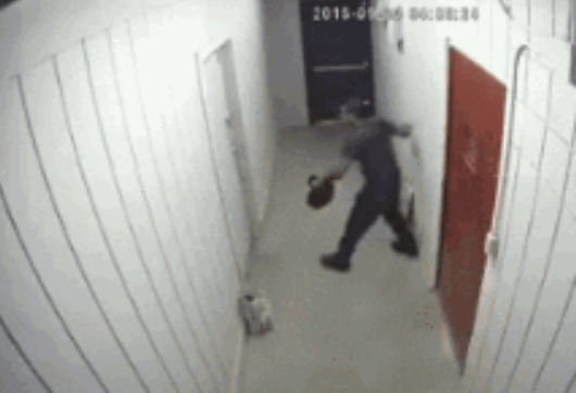 当地时间9月30日凌晨4点多,小偷来了。当大门关上的那一刹那,还剩下三扇门。打不开,那一扇也打不开,另外一扇还是打不开!小偷开始玩暴力,狠踹。不过店主表示基本没用,三扇门都是他专门换过双层钢板加固的。
