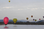 堪培拉举行热气球节 热气球飞过格里芬湖