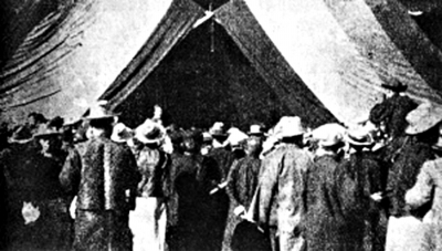 1925年10月10日,故宫博物院成立大会在神武门前举行。故宫门前悬挂着北洋政府时期的国旗——五色旗。