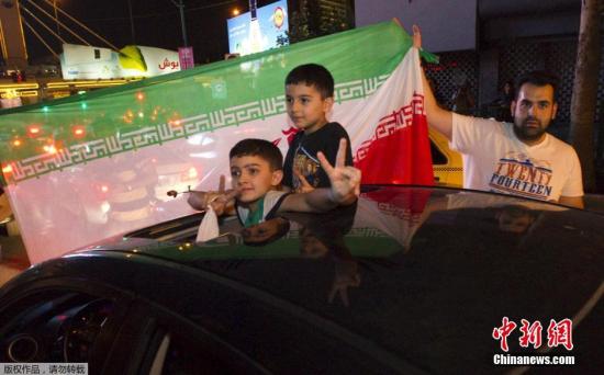 资料图:伊核协议达成后,德黑兰街头庆祝的伊朗民众。