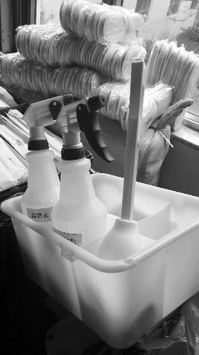记者实地查看了郑某父亲进入的“员工专用工作室”,这间工作室与其他客房并不相连,工作室门口贴有“员工专用”字样,里面摆放着客房工作车,工作车上摆放着一个“清洁剂专用筐”,筐里放着两个喷壶,并且在上边贴有标志。戴某告诉记者:“郑某的意外死亡发生后,我们就从酒店管理的角度,将清洁剂的容器统一规范了。”