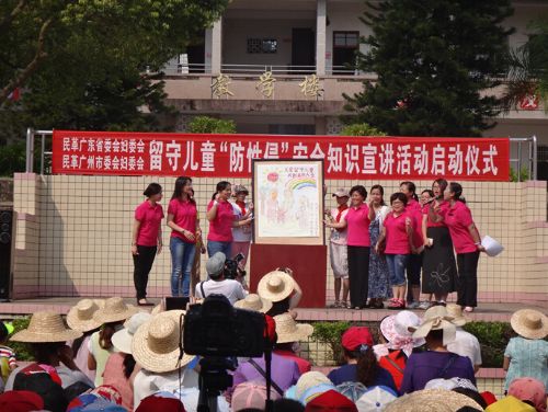 9月11日,广东省河源市紫金县古竹镇上联小学操场上,身着“大灰狼”与“小绵羊”的人偶吸引了在场近千人的目光,他们正在表演的是《宝贝,别害怕》防狼情景剧,通过旁白解说和场景表演教导孩子们防狼术。该活动是民革广东省委会和广州市委会共同开展的留守儿童“防性侵”安全知识宣讲活动的一部分。从2014年开始,广东省市民革组织高度关注农村留守儿童性安全问题,开展了系列调研,提出的建议得到有关部门高度重视,推进政府有关部门加快了农村留守儿童性安全保障体系的完善。