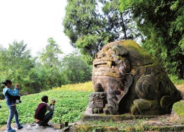 成都发现中国最大石狮:鼻头已被刻字签名