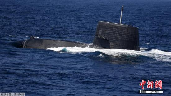 当地时间10月18日,日本海上自卫队在相模湾正式举行“观舰式”。图为日本海上自卫队涡潮级潜艇冲出水面。