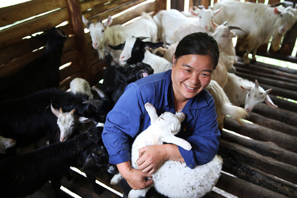10月17日,重庆市黔江区黄溪镇黄桥村2组贫困户廖玖华在照顾小羊羔。