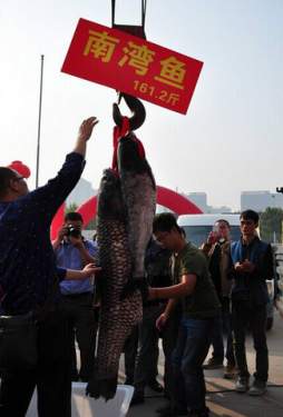 市民围观鱼王下锅