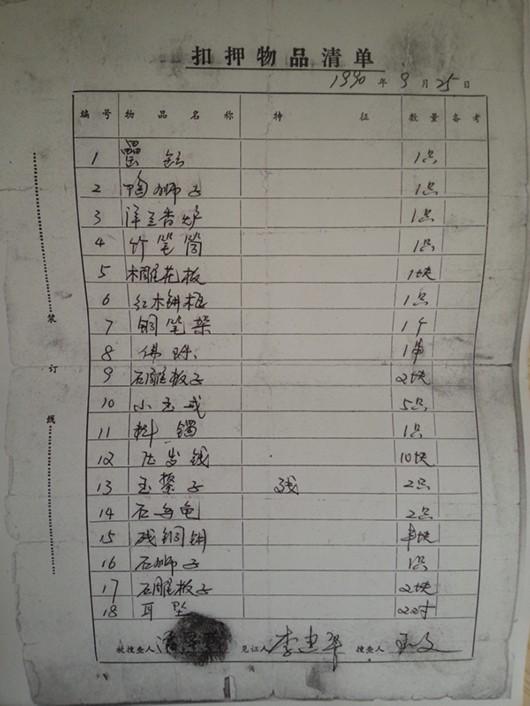 潘新明说,事发时他才8岁,家人尚未对这些收藏品进行过估值,这些年他们一直在向临湘市公安局讨要当年的扣押物品,一直没有结果。