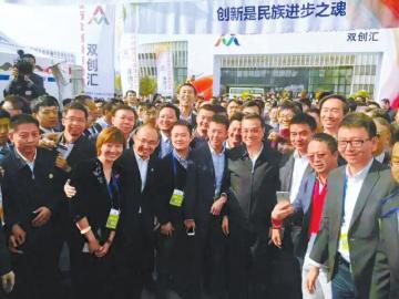 北京双创会启动仪式上,陈飞宇(圈内)和总理合影。
