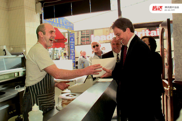 同年的4月14日,另一名英国首相候选人、工党领袖托尼·布莱尔也在一家餐馆外带炸鱼薯条。在那一年大选中,布莱尔最终赢了梅杰。