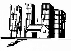 二、 四面高中间低不选,这样的楼房,如果选择四周的可还勉强可以,但如选择中间最低的,那不用潘教授过多解释,大家也明白,气势被压,而且是四方,不利家人运势,容易经常被他人欺负。