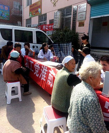 2015年10月18日,农工党淮南市委会组织朝阳医院、第一人民医院、东方医疗集团等数家大型医疗机构的12名农工党党员医疗专家,组成义诊医疗队,带着医疗器械,在淮南市上窑镇上窑社区居委会门前开展了秋日义诊咨询活动。