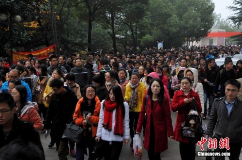 资料图:2014年11月30日,2015年中国国家公务员考试开考。图为山西太原一处国家公务员考试考点,考生们有序入场。中新社发 武俊杰 摄