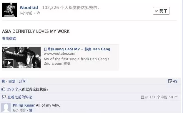 韩庚的《狂草》融入了许多中国元素,标题狂草本身就来自于中国的书法。不过,这首运用了泼墨狂草画面的MV播出后,美国歌手Woodkid在Facebook上转发并评论:“Asia definitely loves my work(亚洲人显然很热爱我的作品)。”一时间,质疑声充斥网络。